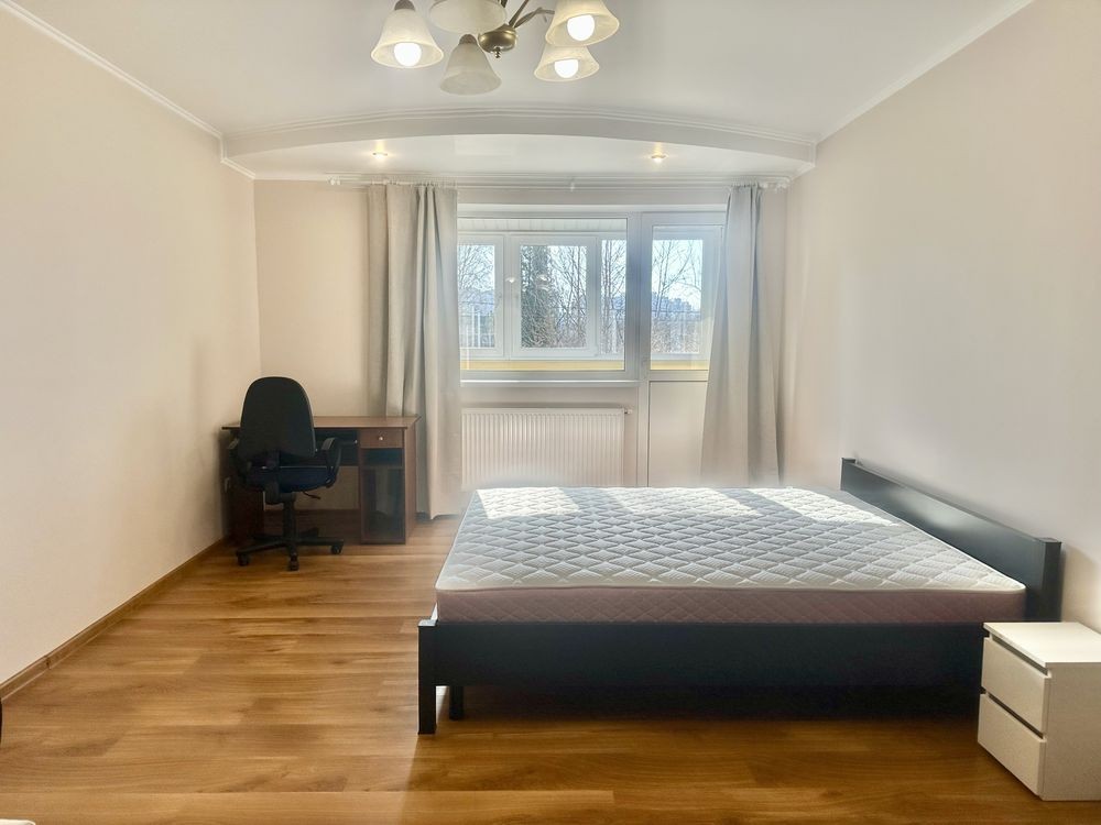 * Простора кімната з двоспальним ліжком (новий матрац), розкладним диваном, робочим місцем. Вихід на засклений балкон.
