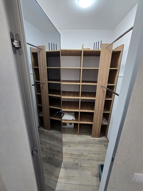 Кухня, ізольована спальня, гардеробна, засклена лоджія.