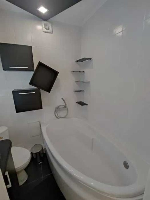 У ванній — ванна з душовим краном, пральна машина та електричний бойлер для підігріву води. В коридорі велика шафа-купе з дзеркальними дверима.