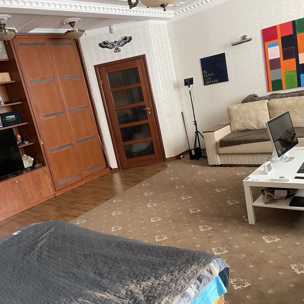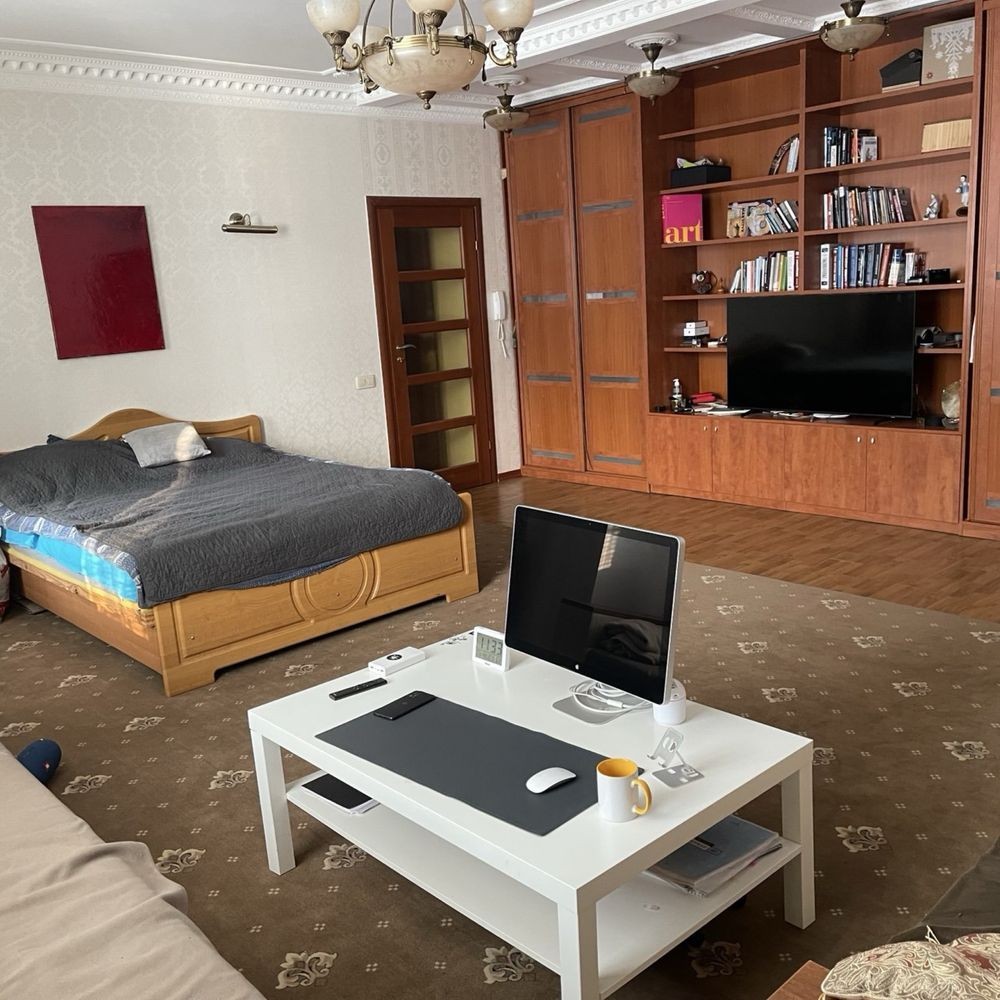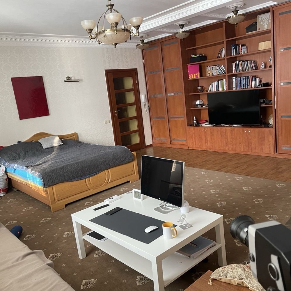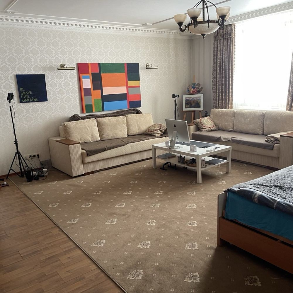 Велика житлова кімната 35 м² з двома ліжками, 2 санвузли, висота стелі 3 м.