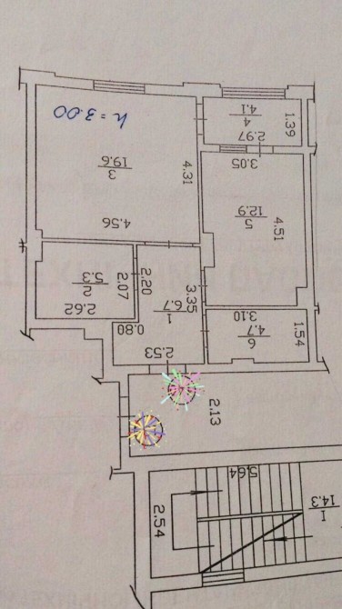 Висота стелі 3 метри.