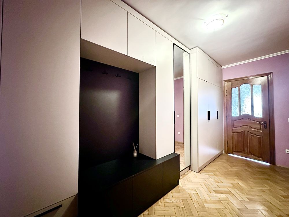 • Меблі та техніка: в квартирі всі меблі поміняні (диван,двоспальне ліжко, шафа, кухонний стіл) плита, духовка, витяжка, мікрохвильова піч, холодильник, пральна машина, рушникосушка