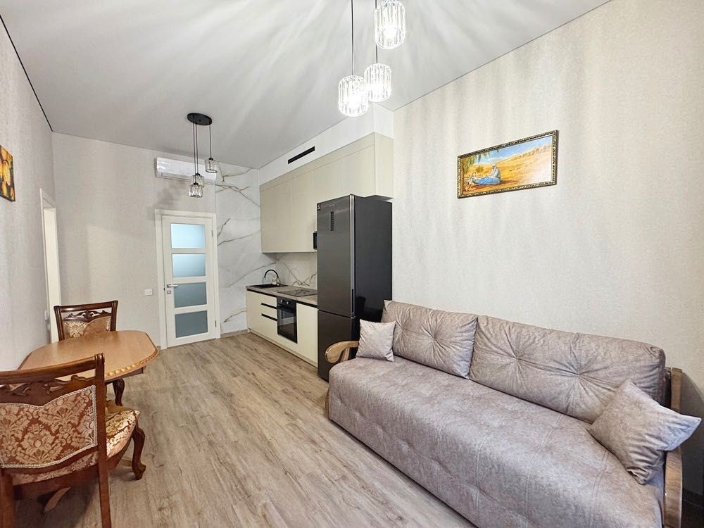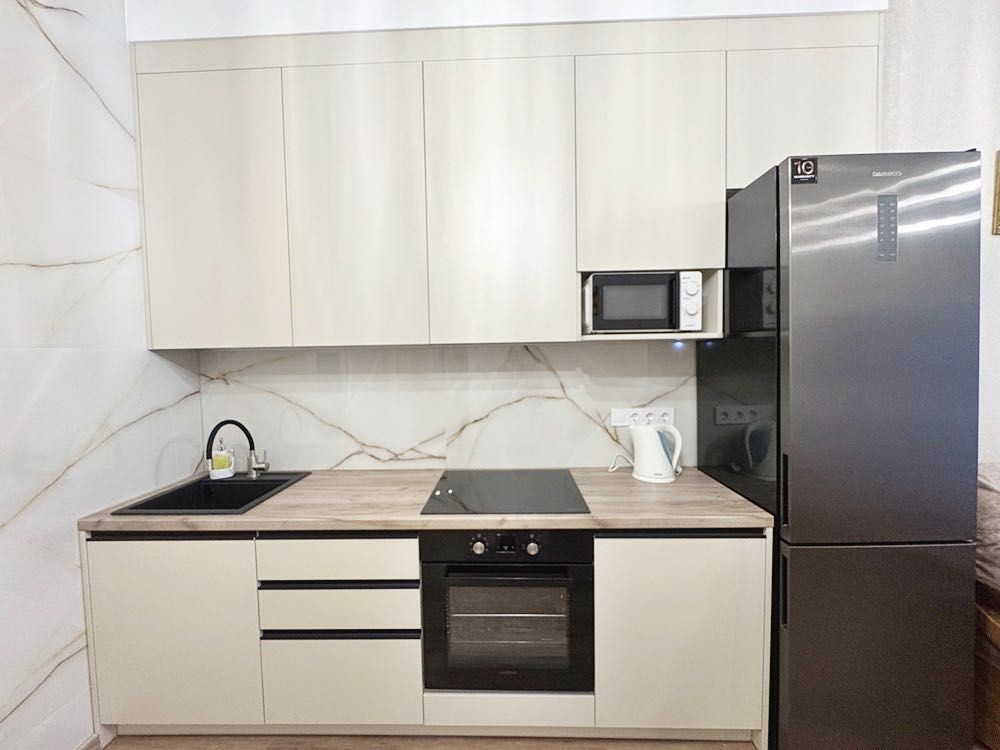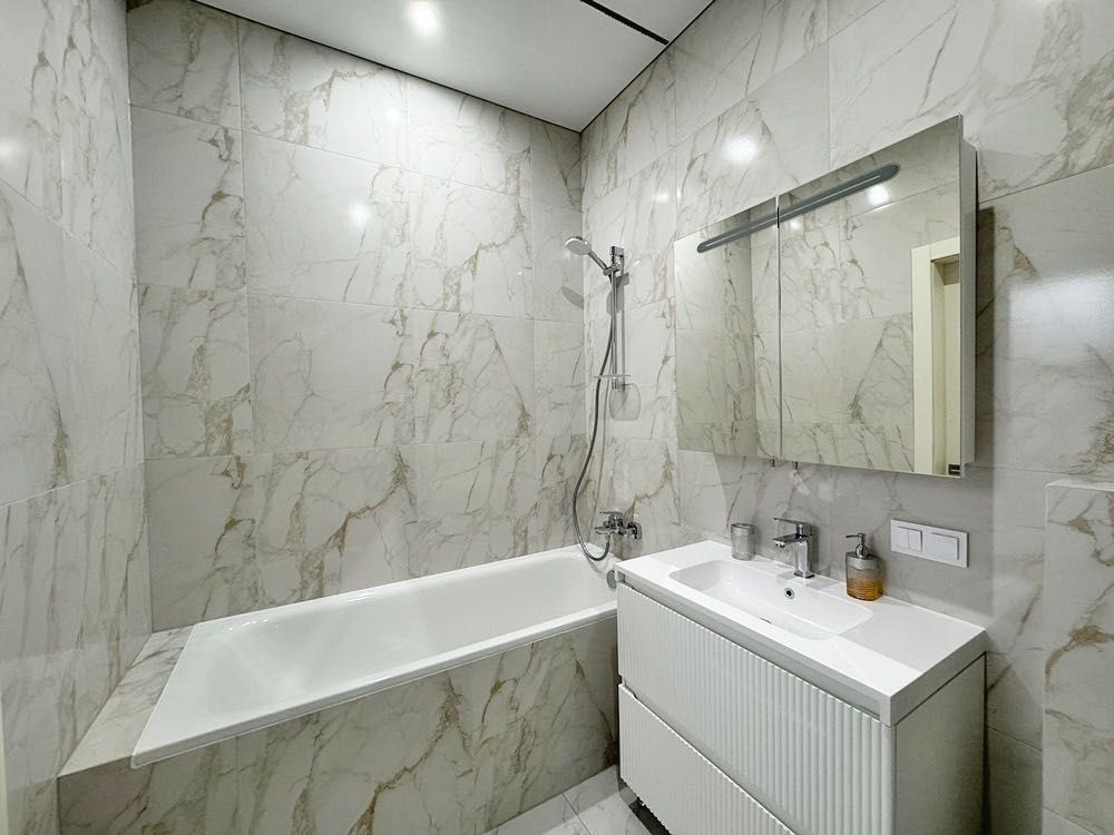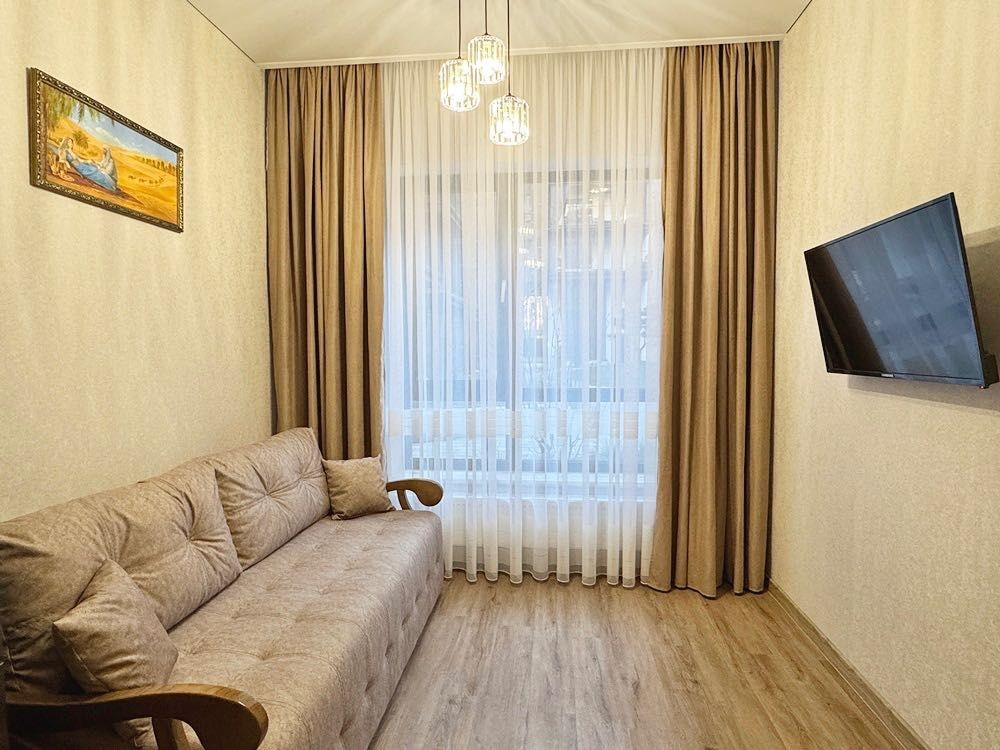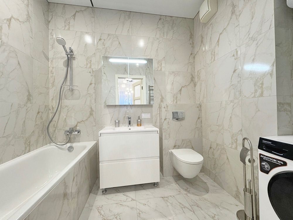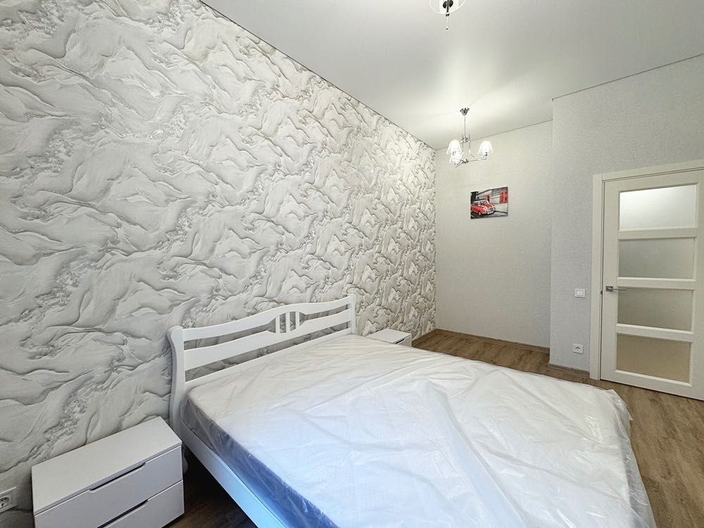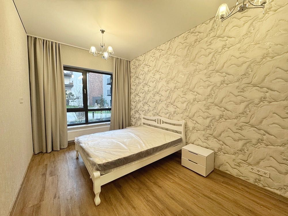 Ремонт новий, виконаний у спокійних світлих тонах, після завершення у квартирі ніхто не проживав. Висота стель — 3,2 м, що створює відчуття простору.