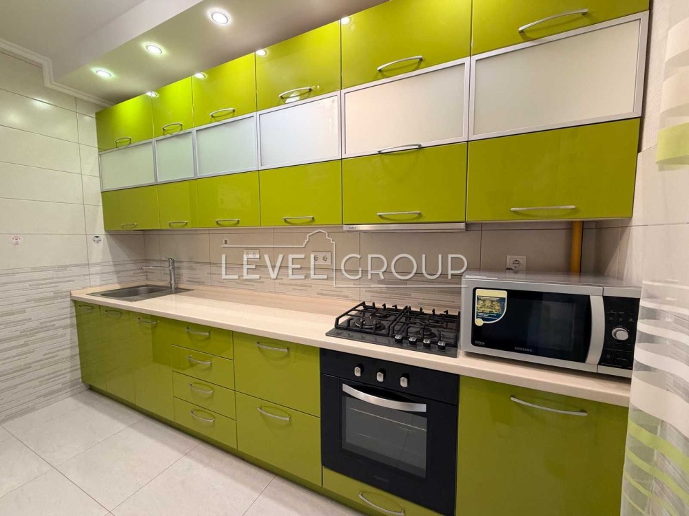Квартира з якісним сучасним ремонтом, складається з кухні, оснащеної газовою панеллю, духовою шафою, посудомийною машиною, витяжкою, є вихід на місткий балкон. окремої кімнати, в якій є розкладний диван, два столи, інверторний кондиціонер, телевізор, сумісного санвузла, оснащеного ванною, пральною машиною, бойлером.