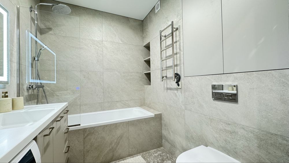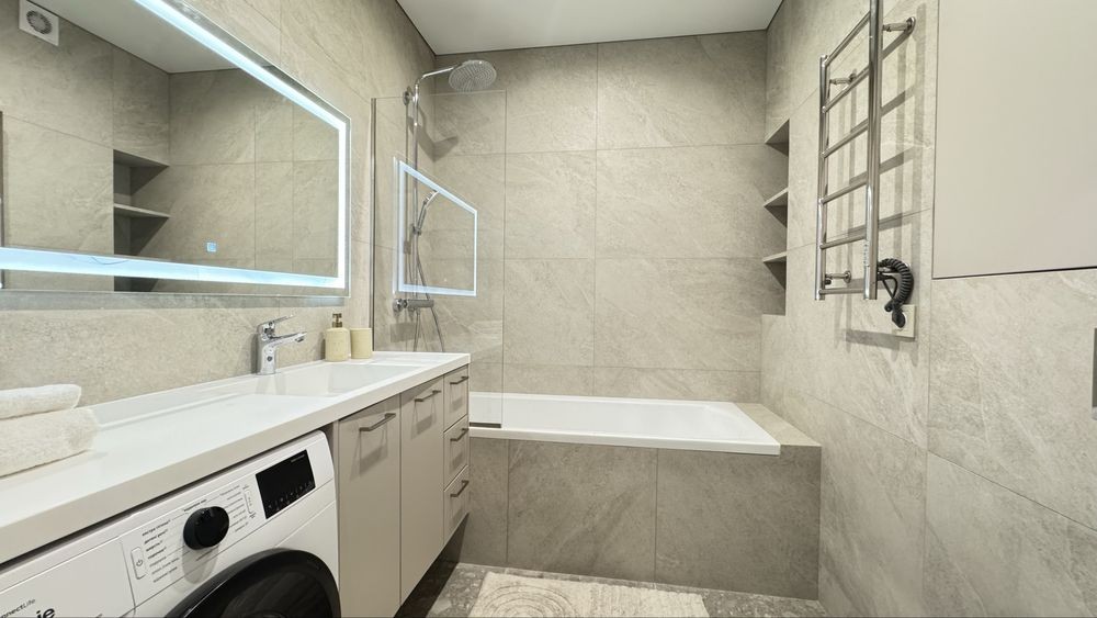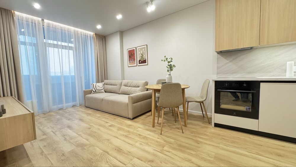 Функціональне планування: простора кухня-вітальня для життя і зустрічей, окрема спальня для відпочинку, стильна ванна кімната. Квартира повністю укомплектована новими меблями та технікою — можна заїжджати одразу, без жодних додаткових витрат.