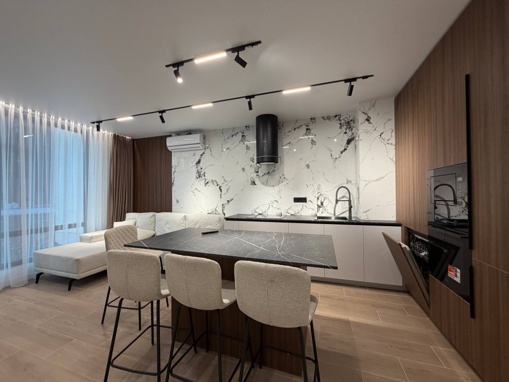- всі необхідні меблі техніка:кондиціонер, посудомийна машина,вмонтована духова шафа, холодильник, кондиціонер
