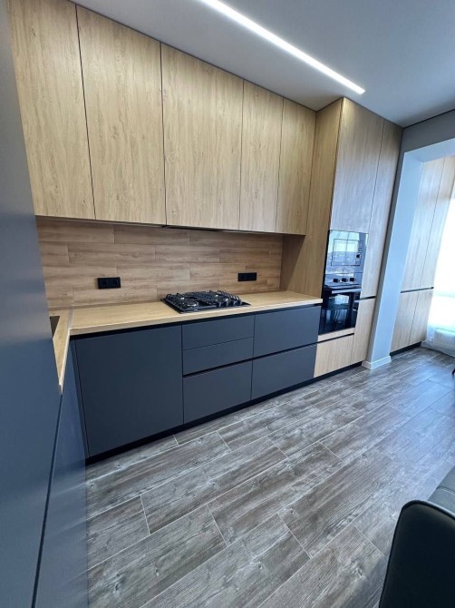 - вся необхідна комплектація по меблях та техніці: посудомийна машина, газова варильна поверхня, духова шафа, мікрохвильова піч, витяжка, холодильник, пральна машина
