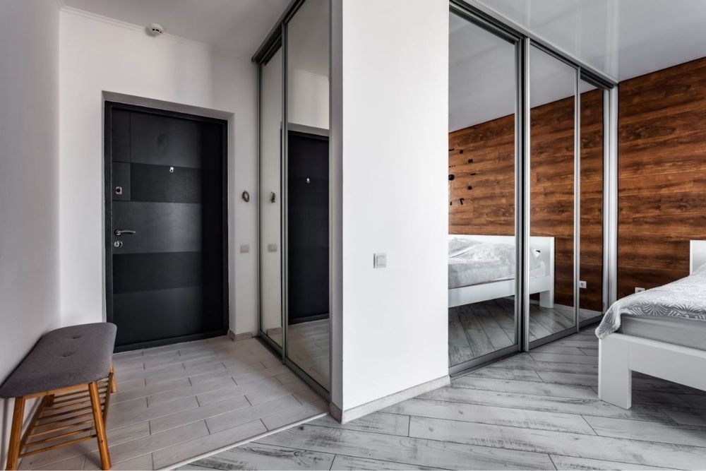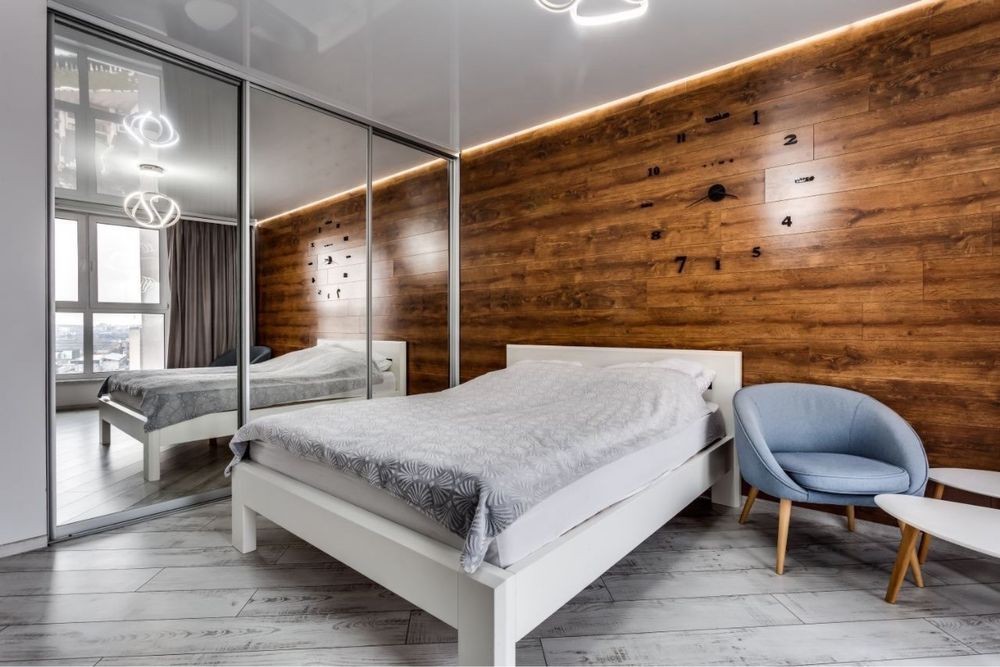Дві шафи-купе. Одна на всю стіну у кімнаті.