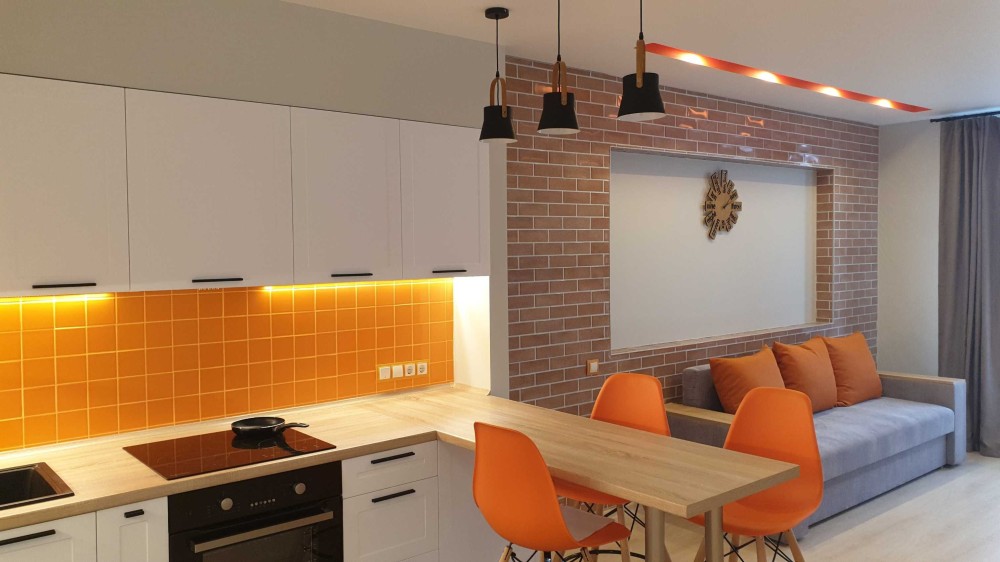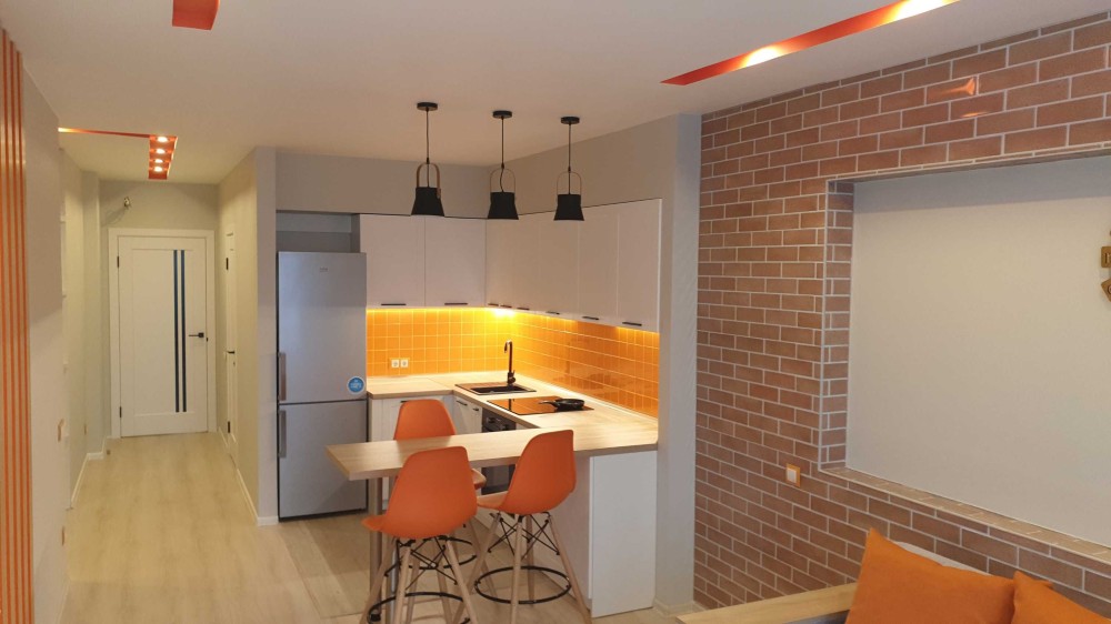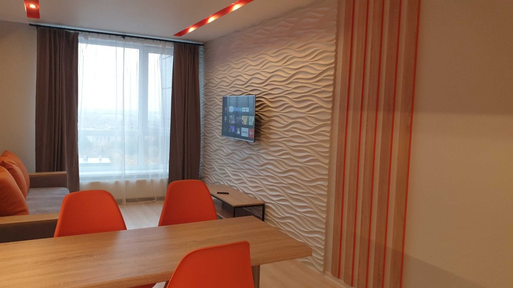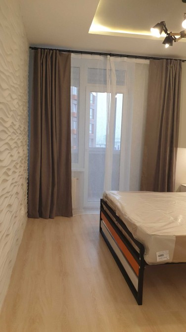Здам комфортну однокімнатну квартиру з авторським ремонтом в будинку бізнес-класу за адресою вул. Вацлава Гавела, буд. 6/7, секція L3. Загальна площа квартири 47 м2. Планування квартири складається з окремої спальні та кухні-студіо. У коридорі знаходиться велика, глибока шафа купе, у спальні двоспальне ліжко з гарним ортопедичним матрацом та додатковими шафами для розміщення одягу.