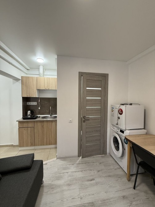 загальна площа 20 кв.м., санвузол сумісний. Студія після капітального ремонту, укомплектована всіма необхідними меблями (диван новий, шафа, стіл, стільці) та побутовою технікою (пральна машинка, холодильник, мікрохвильова піч, бойлер, чайник, плитка електрична, кухонний гарнітур), лічильники на холодну воду та світло. Будинок розташований поряд з магазинами, супермаркетами та оточений мальовничою природою, парк Кіото, кінотеатр, ресторани.
