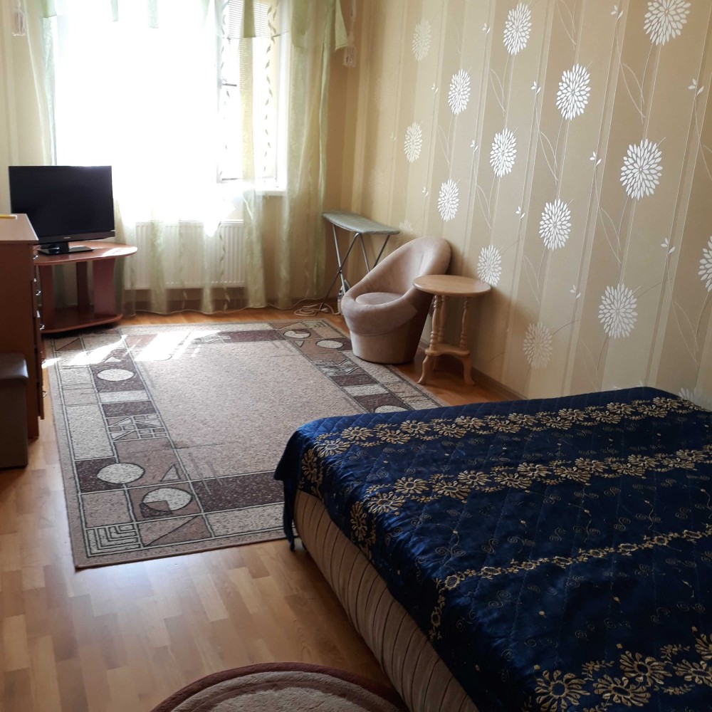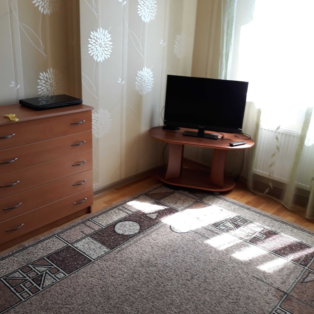 Меблі всі необхідні для комфортного проживання: ліжко 2-х спальне з отропедичним матрацем, крісло, столик новий. Шафа-купе.Телевізор-плазма. Інтернет.