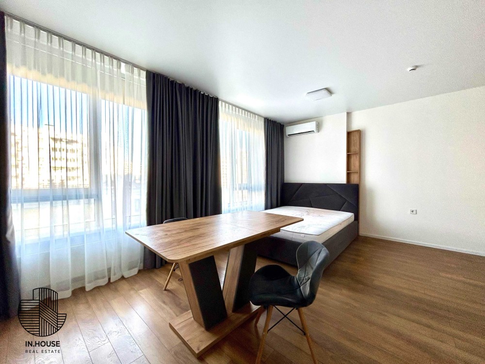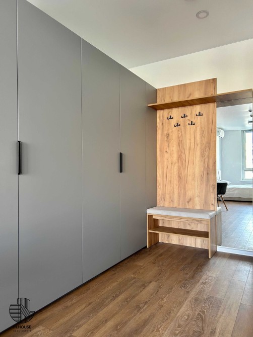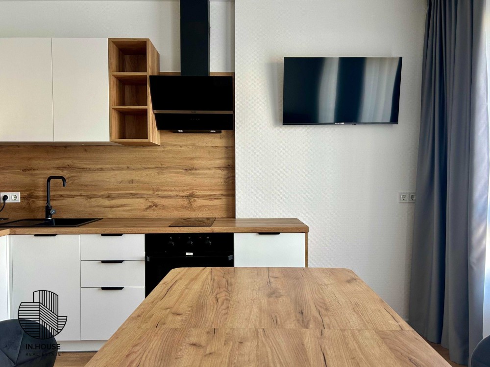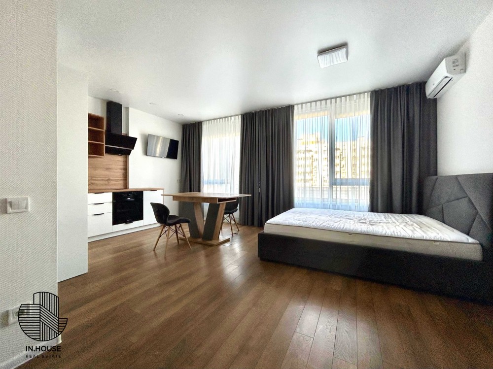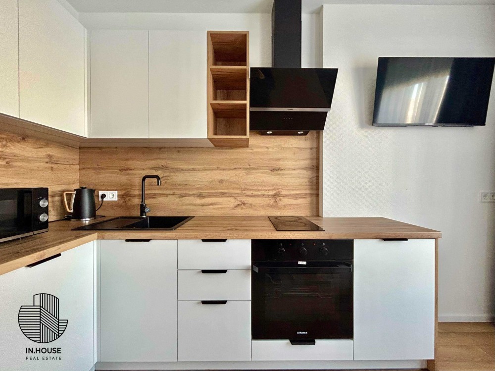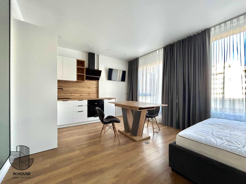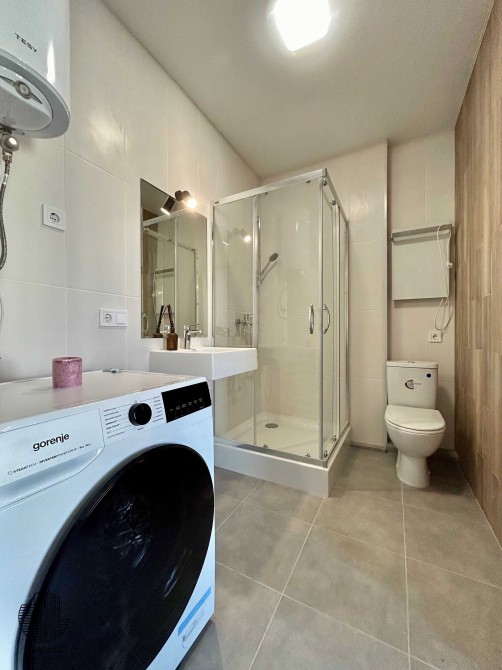 Функціональність: кухня, ліжко, душова та просторі шафи. Вся побутова техніка, включаючи бойлер, холодильник, кондиціювання, мікрохвильова піч, стиральна машинка + сушарка, духова піч.