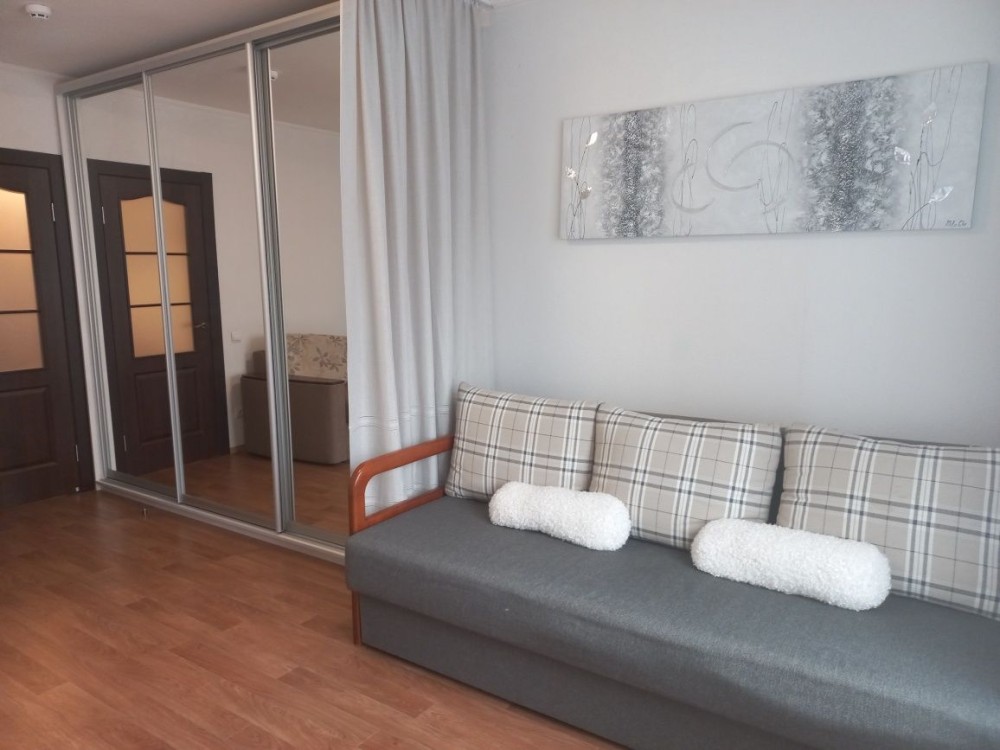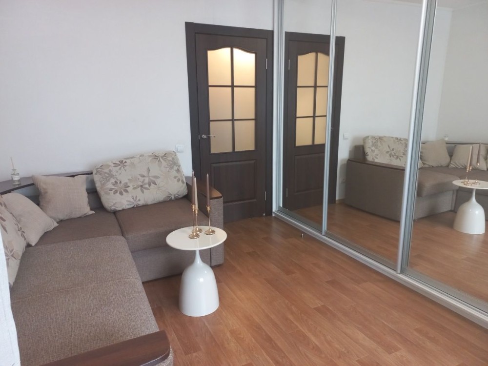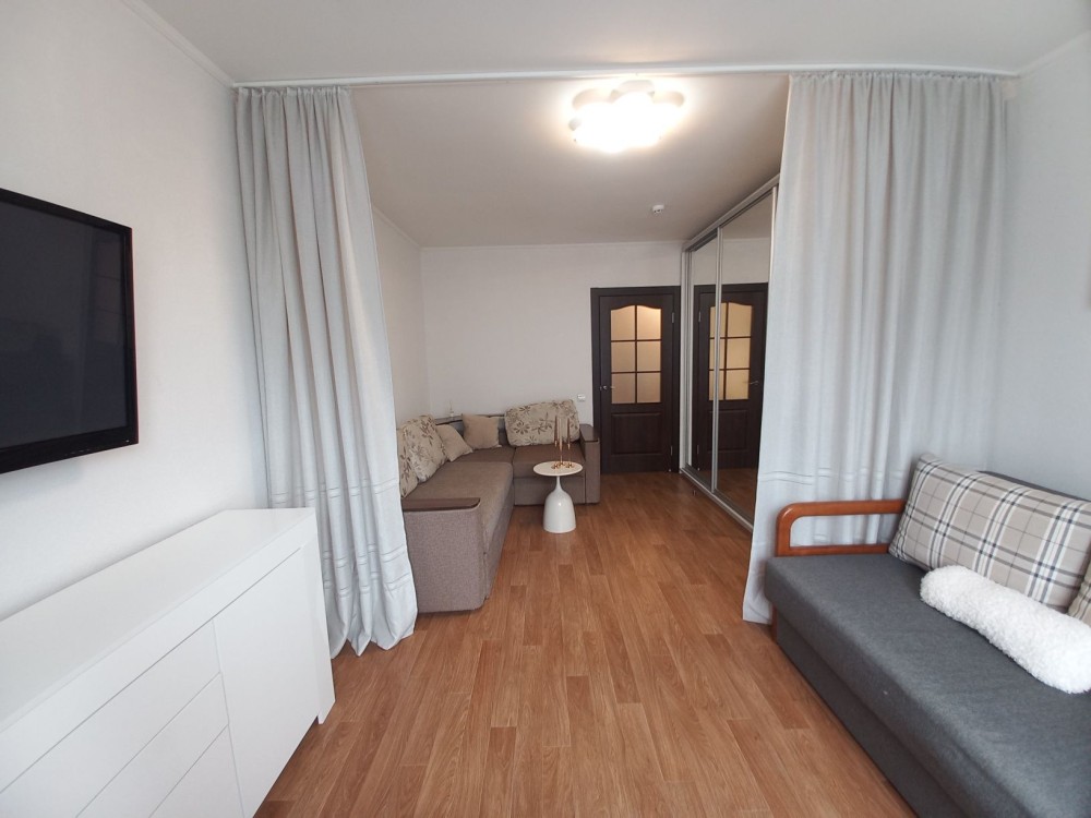 Меблі: дві місткі шафи купе, в кімнаті та в коридорі, комод для зберігання речей. Спальні місця: розкладний диван у кімнаті, також розкладний повноцінний диван на кухні. У коридорі шафа купе, велике дзеркало, бенкетка.