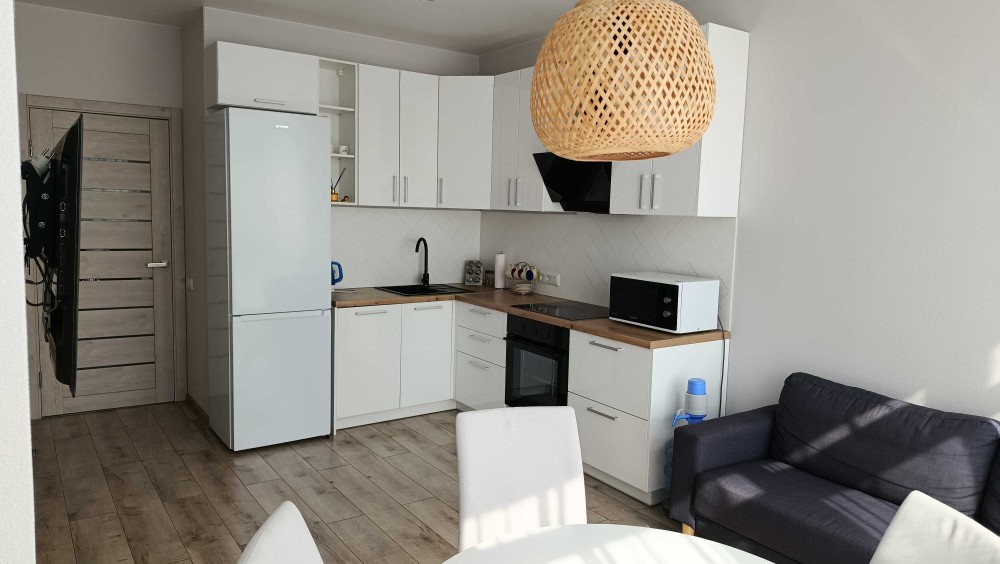 Наповнення: пральна машина, бойлер, кондиціонер, холодильник, посудомийна машина, плита, духова шафа, два телевізори. Є оптичний інтернет (працює під час блекаутів).