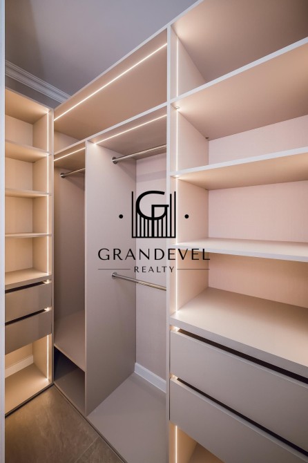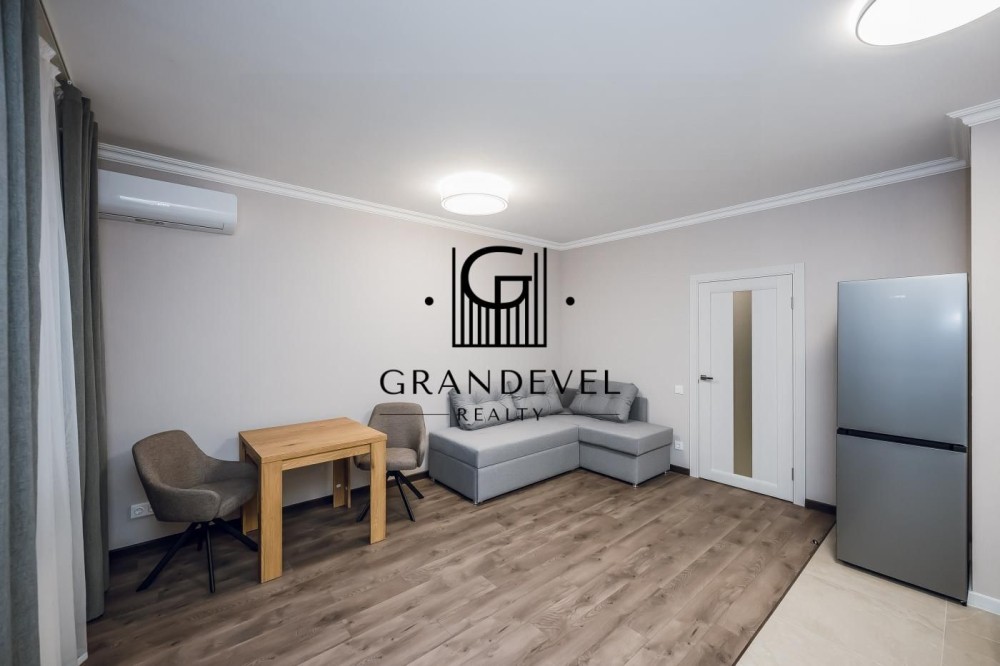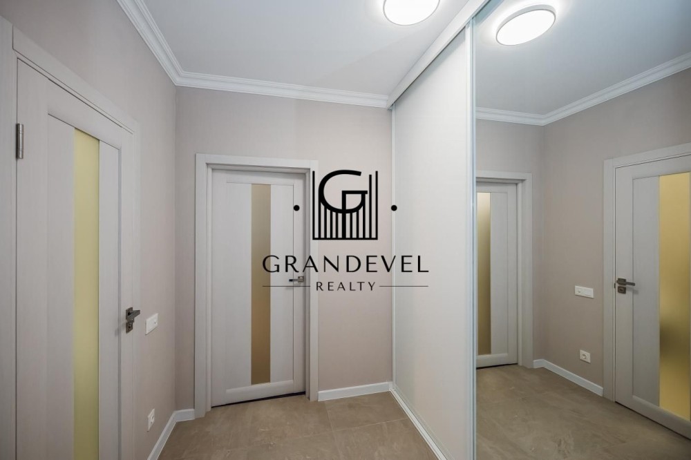 Планування: простора кухня-вітальня з лоджією, суміщений санвузол з ванною, окрема гардеробна кімната.