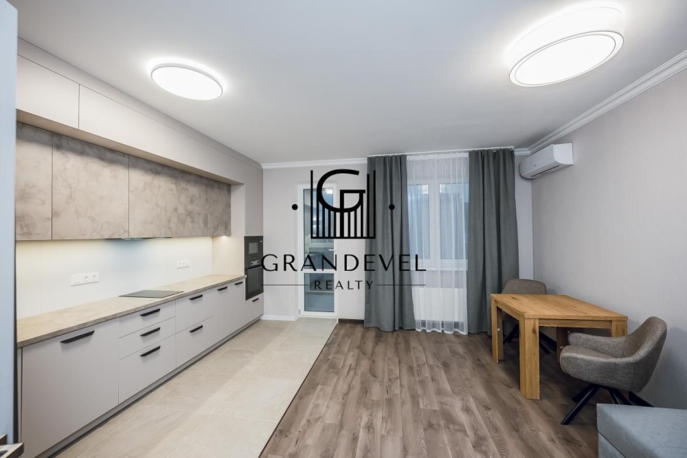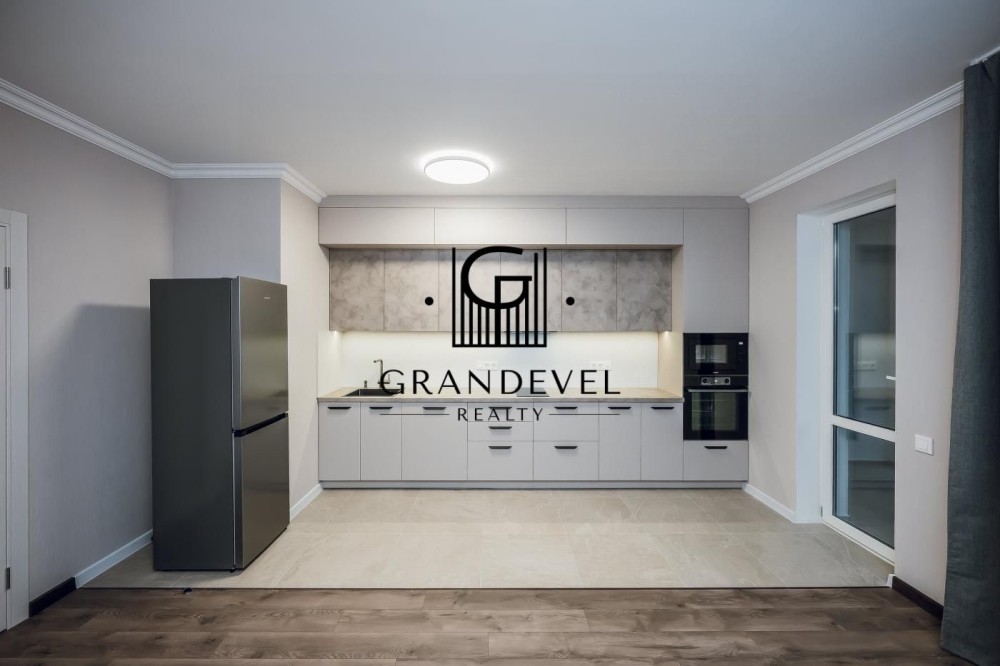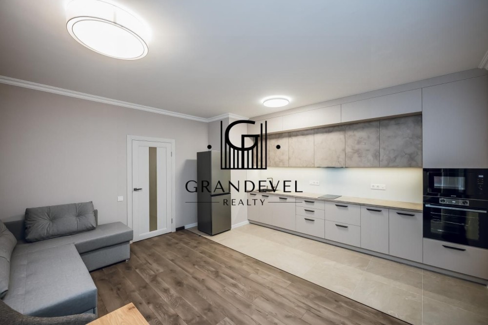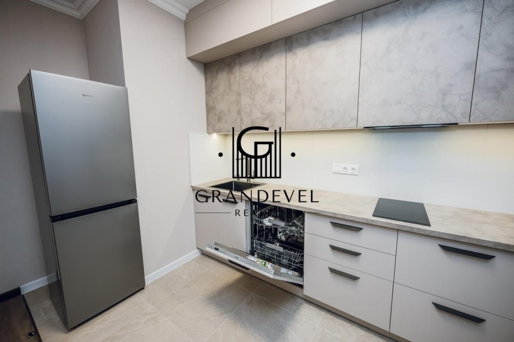 Квартира повністю укомплектована новими меблями та технікою: великий диван, вбудована кухня, варильна поверхня, духова шафа, холодильник, кондиціонер, бойлер, пральна та посудомийна машини.