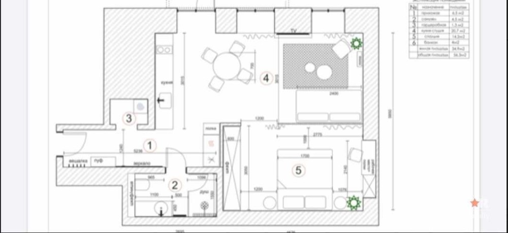 • Общая площадь 55 м2