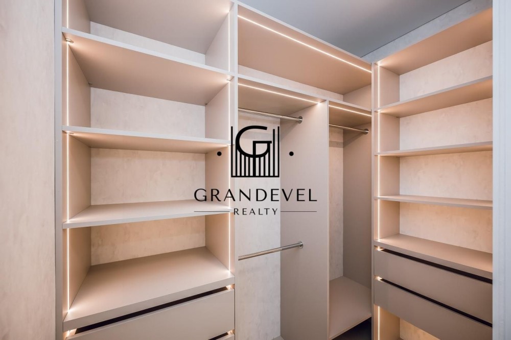 Планування: простора кухня-вітальня з лоджією, окрема гардеробна.