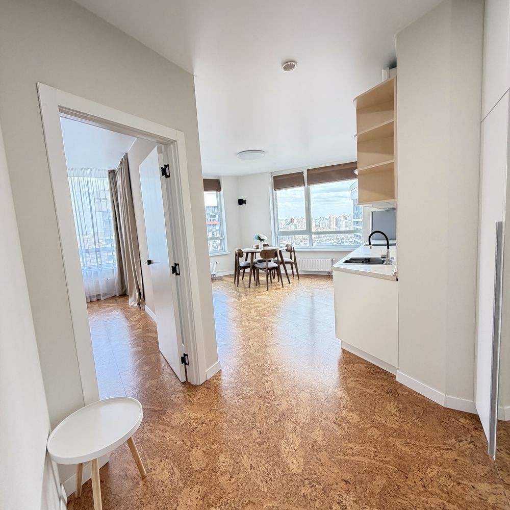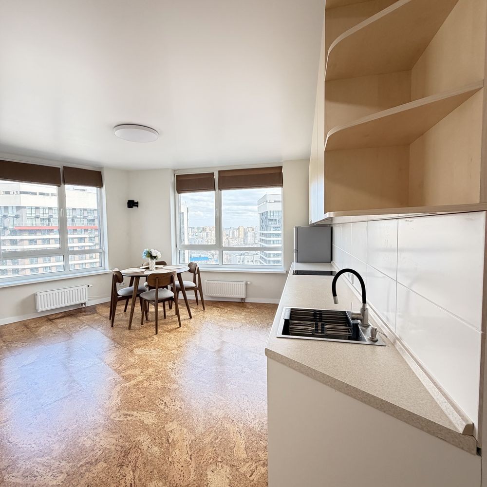 Простора стильна квартира з панорамними вікнами на Дніпро. Перша здача, усе нове.