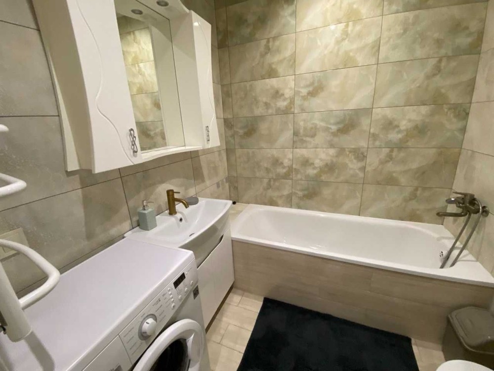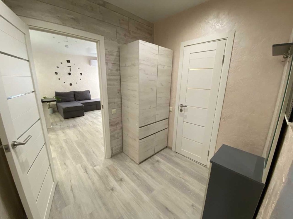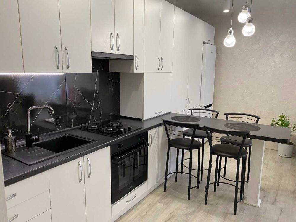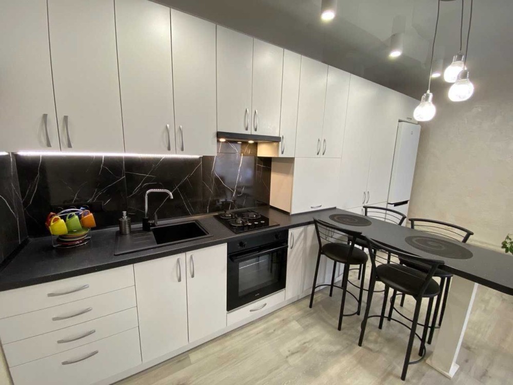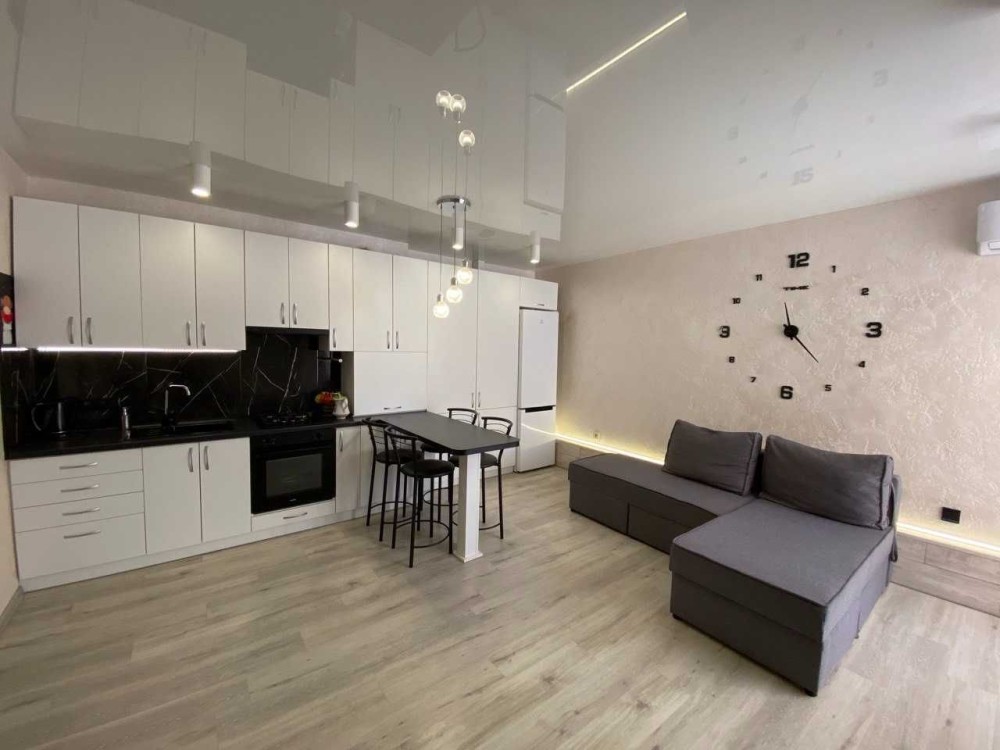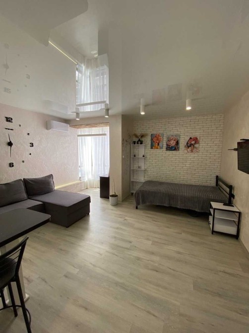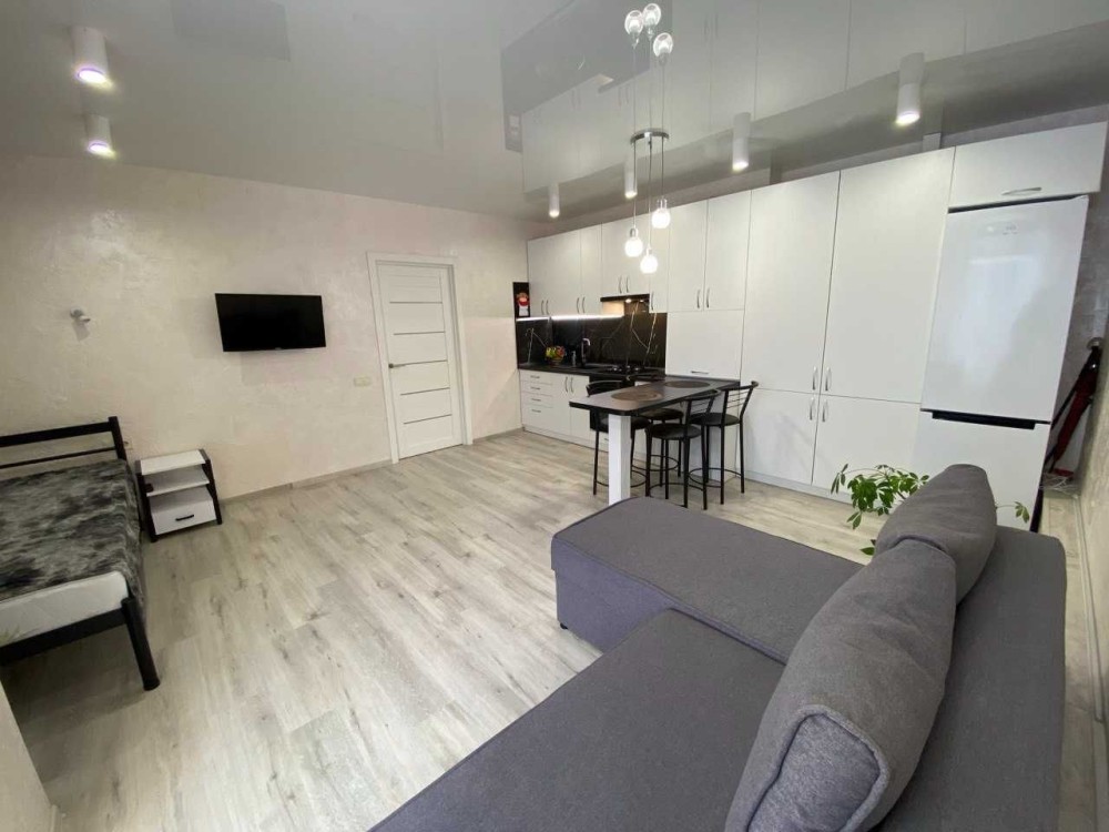 Квартира перепланована в студію, повністю укомплектована меблями та технікою – розкладний диван та ліжко, дві шафи для речей, прихожа, тумби, телевізор, кондиціонер, холодильник, пральна машина, мікрохвильова піч, електрочайник, мультиварка, пилосмок, газова поверхня з духовою шафою!