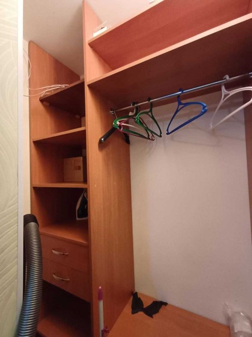 Бойлер, холодильник, пральна машина, витяжка, вбудована газова поверхня, вбудована духовка та витяжка, електо чайник, мікро хвильова піч, ТВ, два кондиціонера, праска, сушарка, Велика гардеробна кімната з поличками та вішаками, розсувний диван, шафа-купе.