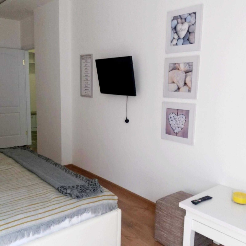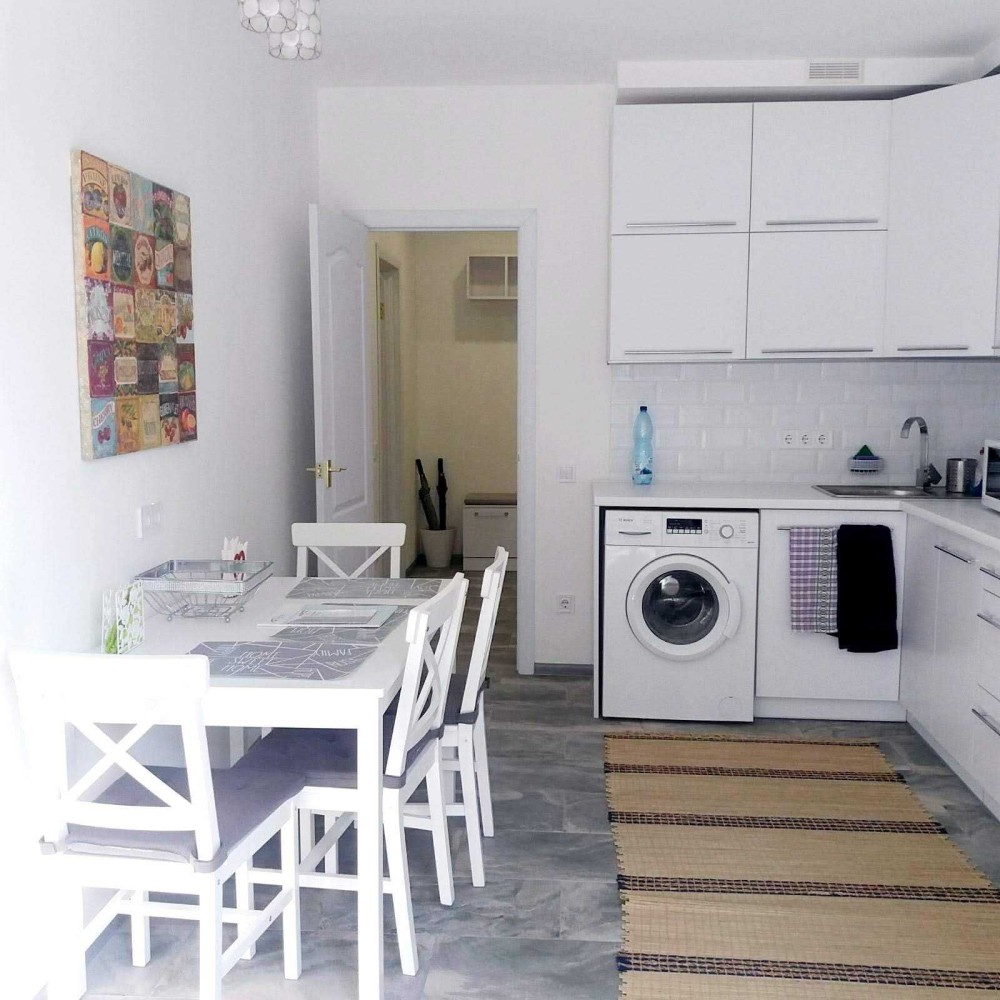 Євроремонт в білих тонах. Двоспальне ліжко, душева. Необхідна побутова техніка.