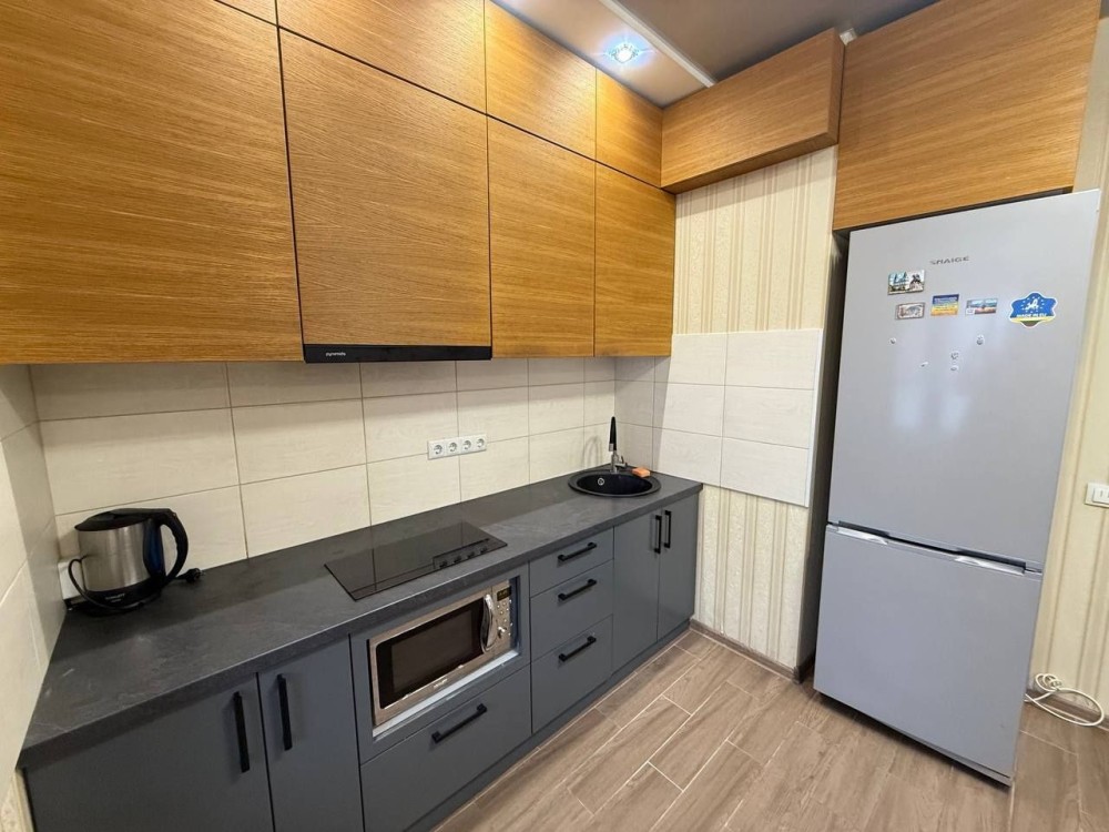 Техніка: холодильник, Варильна поверхня, мікрохвильова піч, електрочайник, кондиціонер, пралка, телевізор.