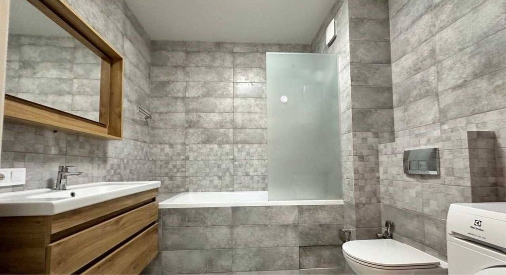 Для ремонту використовувалися дорогі якісні матеріали, Сантехніка відомих світових німецьких брендів Crohe, Am.Pm., Villeroy Boch, керамограніт Іспанія, столешні-натуральне каміння, подогрів підлоги. Меблі виготовлялися за індивідуальним замовленням. Вбудований холодильник, варочна поверхня, витяжка, пральна машинка, бойлер., кондиціонер, лижко з ортопедичним матрацом, диван розкладається,