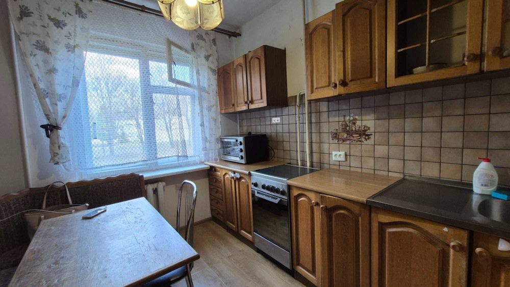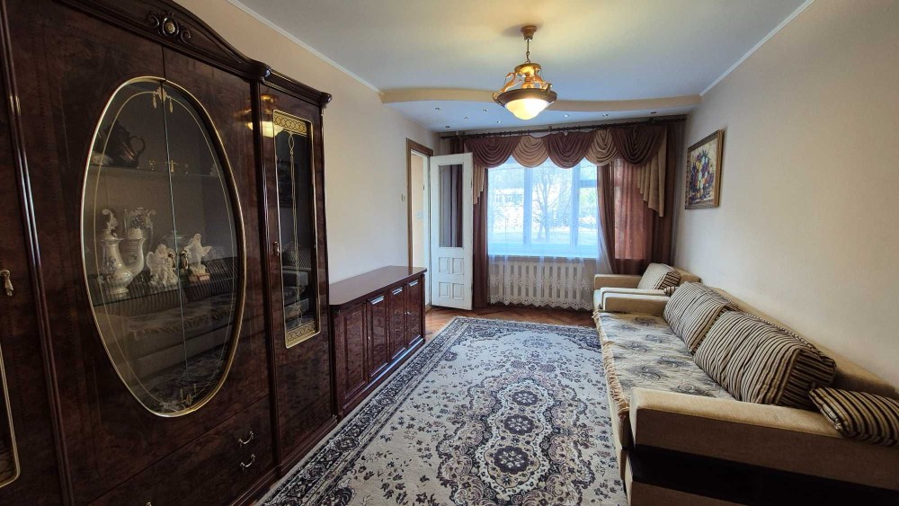 Облаштована двома диванами,є велика шафа-купе,холодильник, пральна машина, мікрохвильова піч, всі лічильники.