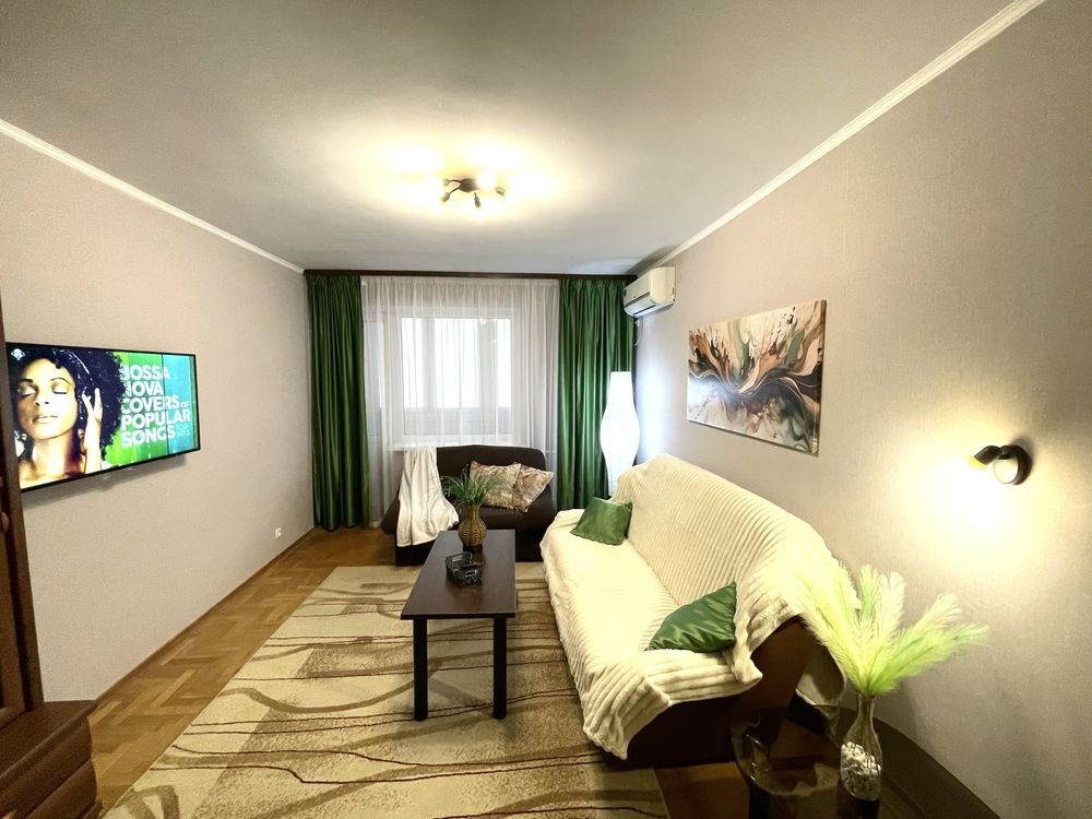 В квартирі є все для комфортного проживання 1-2 людей, просторні кімнати і кухня, багато місць зберігання, робоче місце, чудовий затишний балкон, величезна кровать 180 на 200, вся техніка, телевізор, холодильник, кондиціонер, пральна машина, мікрохвильова піч, бойлер, швидкісний інтернет.