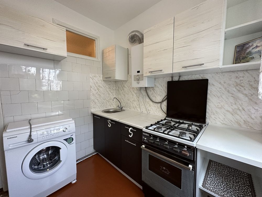 - укомплектована меблями та побутовою технікою : пральна машина , холодильник , газова плита , газова колонка ( гаряча вода постійно )
