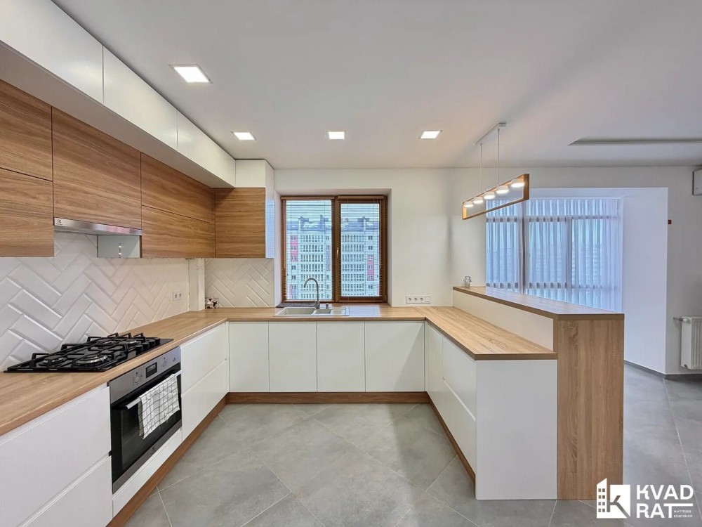 Квартира має зручне планування: дві окремі спальні кімнати та велику світлу кухню-студію, де комфортно проводити час із сімєю або приймати гостей.