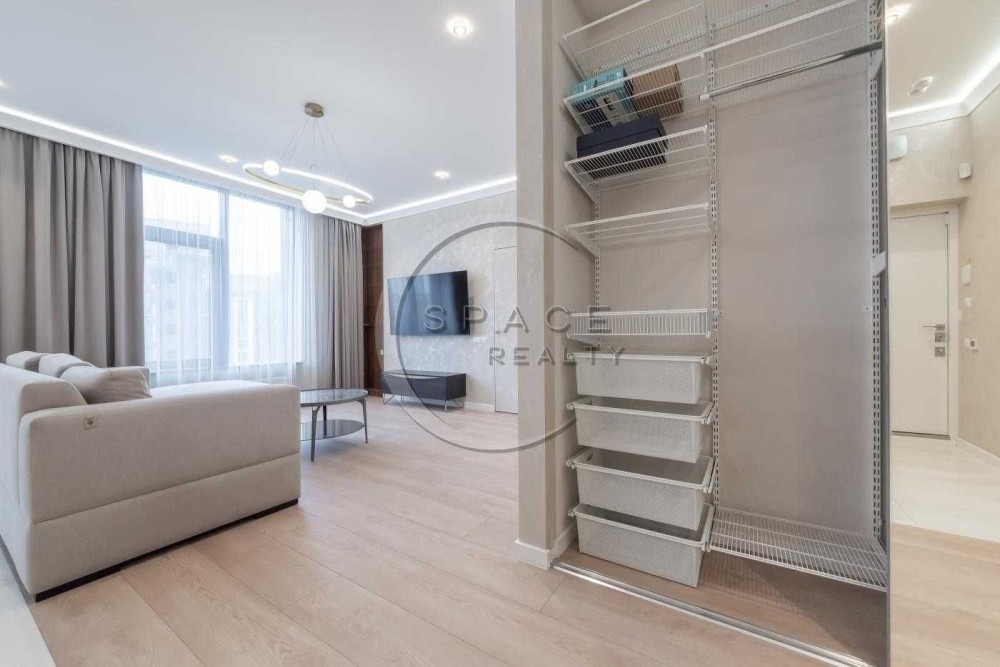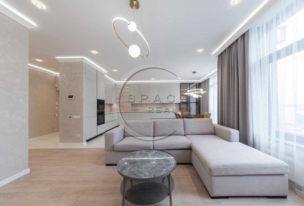 Квартира з якісним ремонтом із дороговартісних матеріалів у стриманих, але теплих тонах. Встановлено всі необхідні меблі, техніка Miele.