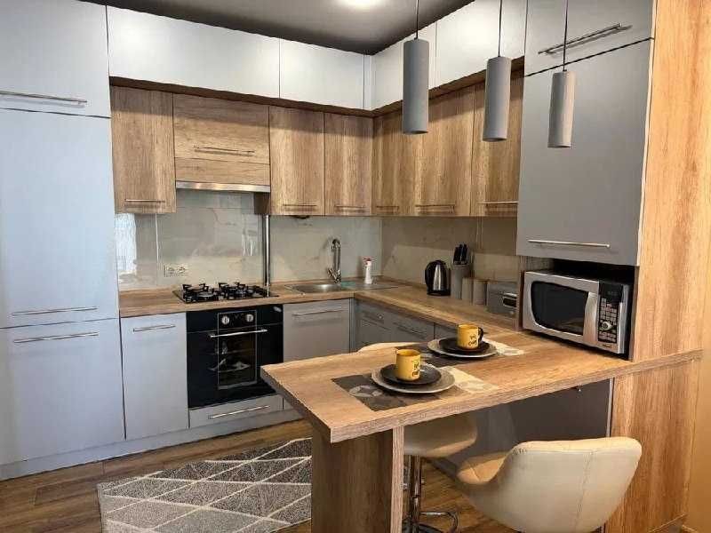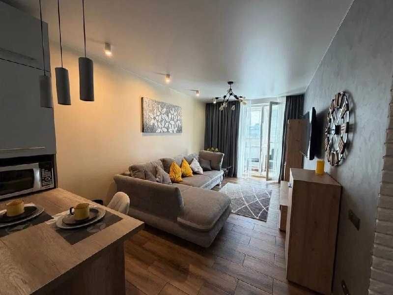 Сучасна квартира 50 кв.м у ЖК Greenville на Княгині Ольги, 98 – все для вашого затишного життя: тепла підлога, кондиціонер, пральна та посудомийна машини, панорамні вікна, повністю мебльована кухня та постільна білизна.