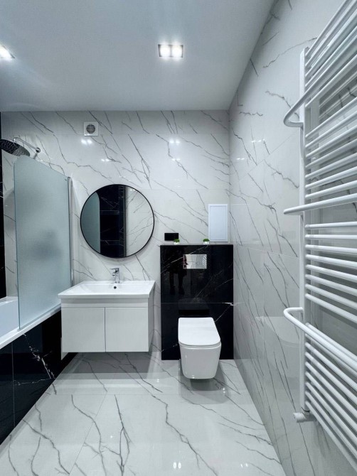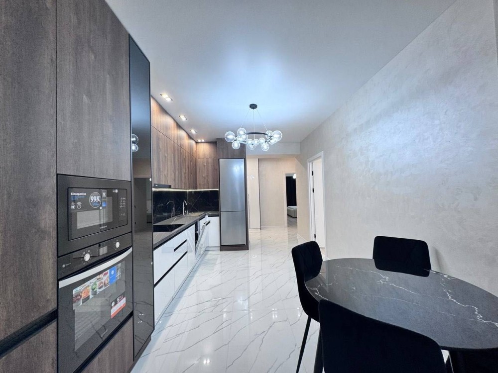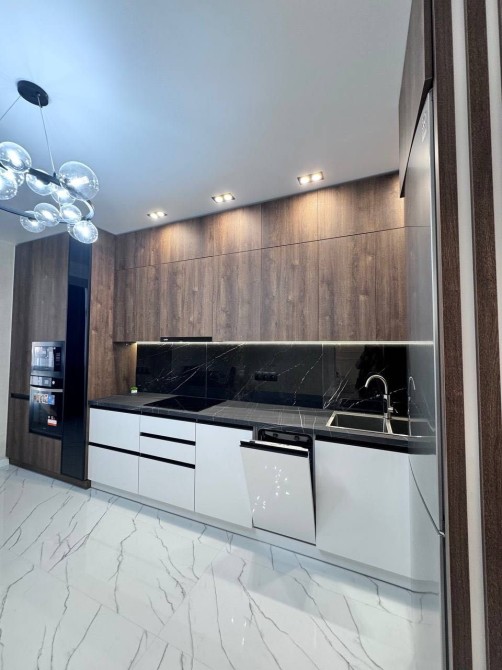 - вся необхідна комплектація по меблях та техніці: пральна машина, посудомийна машина, індукційна варильна поверхня, духова шафа, мікрохвильова піч, витяжка, холодильник, телевізор