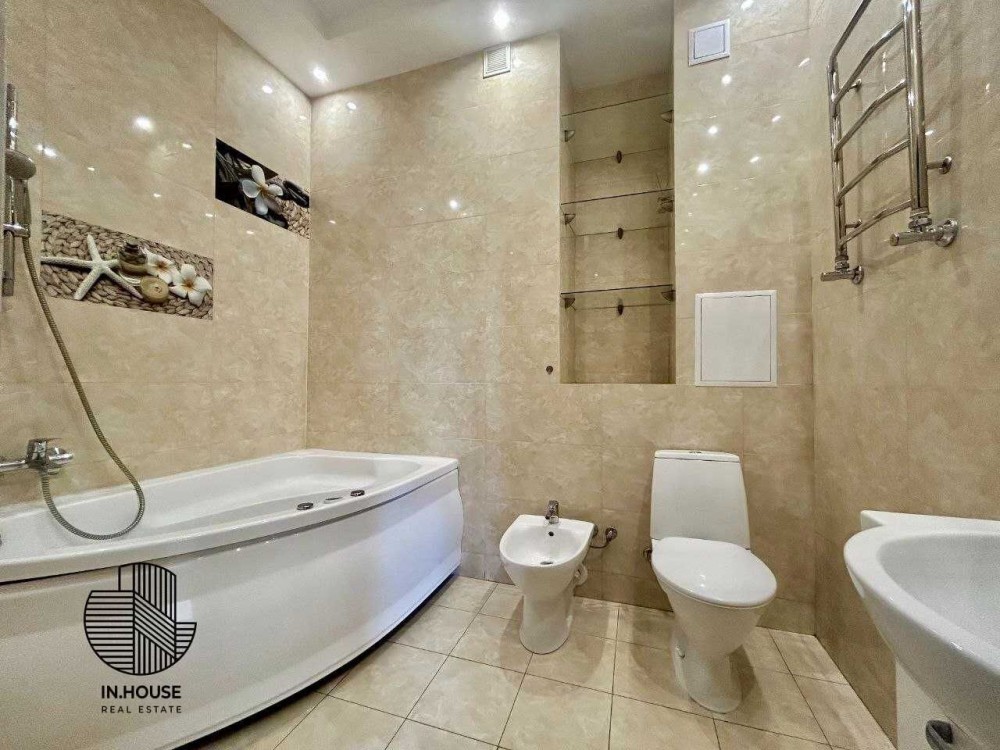 2 кімнати: велика кухня-вітальня (студія), окрема спальня, два санвузли (ванна з біде та душова кабіна).