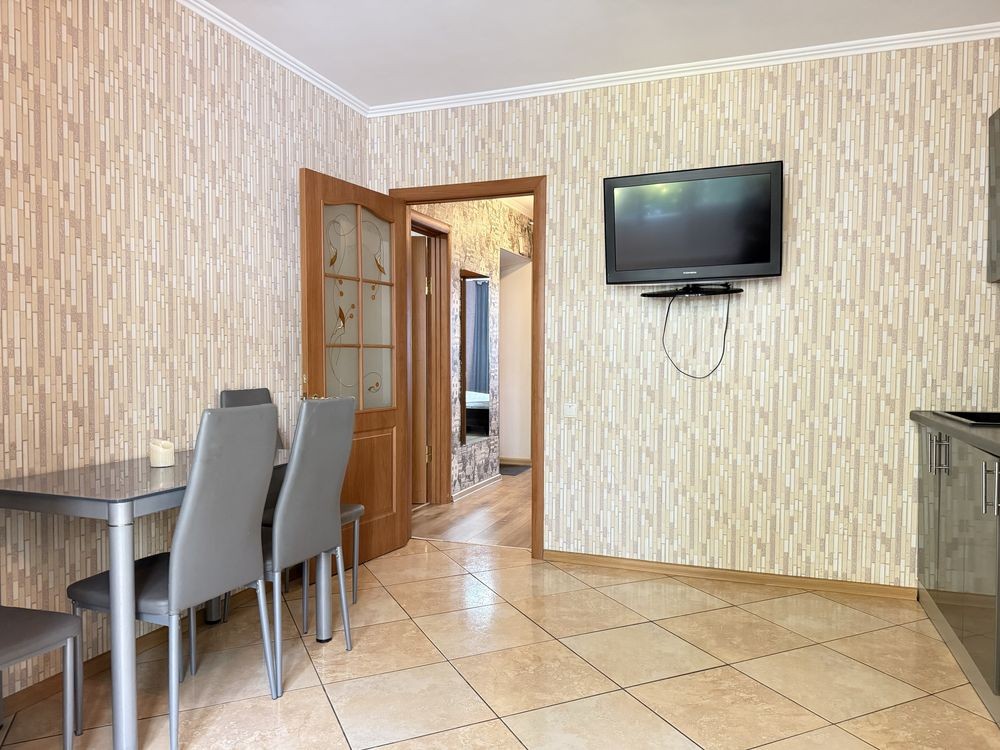 Загальна площа квартири 68 м кв розташована на високому 1 поверсі. В квартирі є все необхідне для комфортного проживання, окрема гардеробна, 2 двох спальні ліжка, кутовий диван, 2 телевізори, 2 шафи.