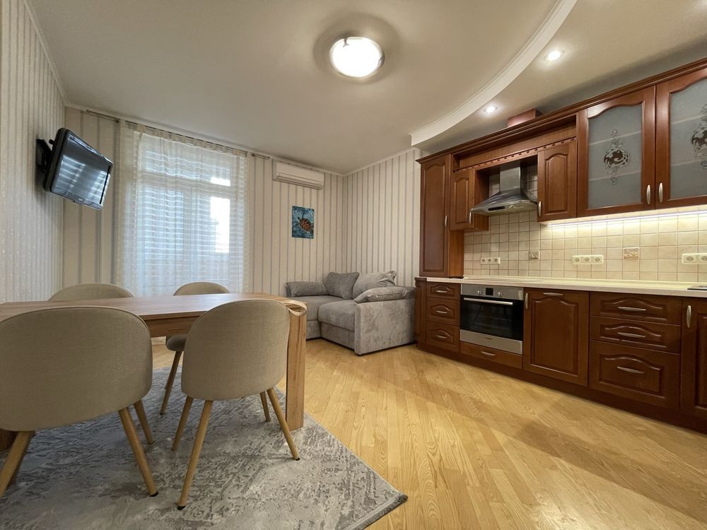 Простора 2 к квартира з якісним ремонтом. Дві окремі кімнати, простора кухня-вітальня з балконом. Повністю мебльована. Вся необхідна побутова техніка: холодильник, посудомийна та пральна машини, кондиціонер. лічильники на всі комунікації. Довгостроково.