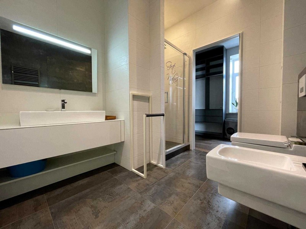 - Прохідна ванна кімната з душовою кабіною та біде