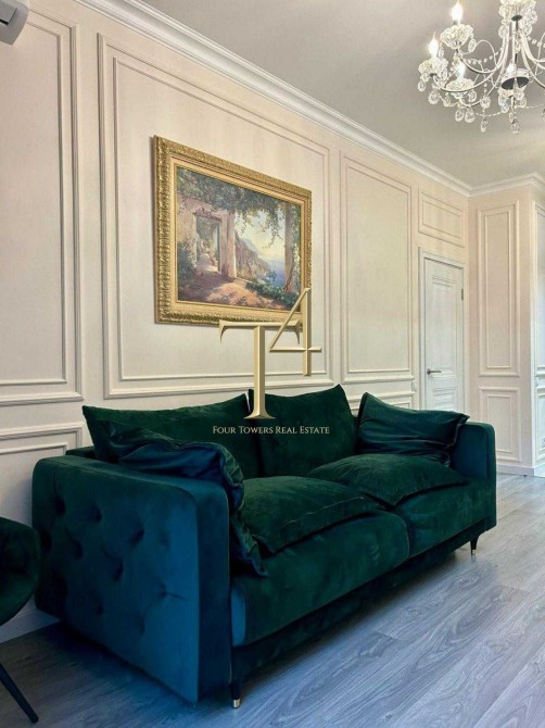 Квартира виконана у стилі неокласика з авторським дизайном та ексклюзивним дорогим ремонтом. Усі деталі інтер’єру продумані до дрібниць: мармурові підвіконня, дизайнерські меблі з Італії, унікальний декор та витвори мистецтва створюють атмосферу справжнього люксу.