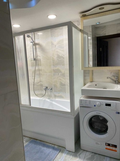 Є всі необхідні меблі та техніка (холодильник Samsung, пральна машина-автомат Indesit, два кондиціонери Samsung та Panasonic, два телевізори Philips та LG, газова поверхня та електродуховка Hotpoint Ariston, газова колонка Junkers, мікрохвильова піч Samsung, електрочайник, праска). Спальне місто – двоспальне ліжко з ортопедичим матрасом.