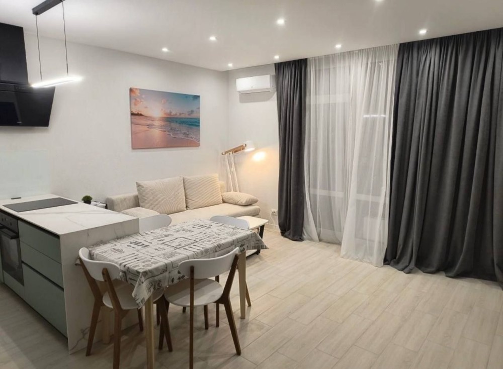 Повна мебльовка та техніка: кондиціонер, телевізор, Wi-Fi, пральна машина, холодильник, мікрохвильова піч, духова шафа, плита, пилосос, праска.