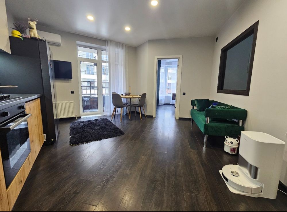 Простора квартира повністю всім укомплектована: мікрохвильова , посудомийка, кондиціонер, телевізори , робот пилосос.