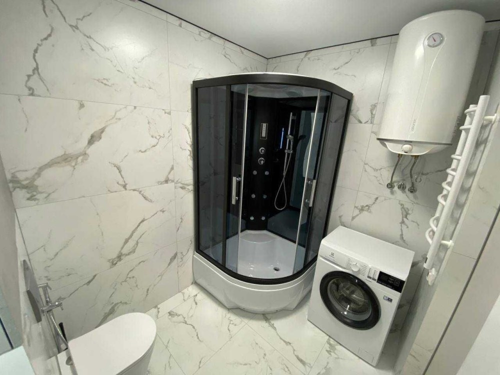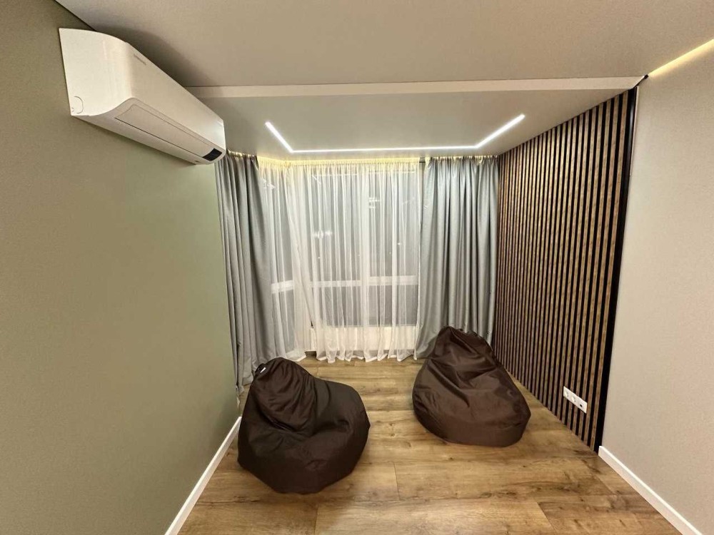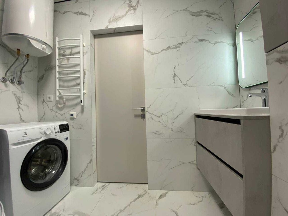 Квартира євродвушка, вся брендова побутова техніка вбудованого типу - електроплита, духова шафа, витяжна система, посудомийна машина, холодильник, кондиціонери Samsung в кожній кімнаті з модулем віддаленного керування. Санвузол - гідрабокс, бойлер, пральня+сушка, вбудовані унітаз та умивальник, тепла підлога, рушникосушарка, витяжка.