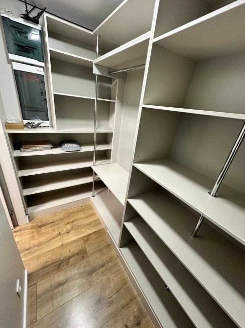 Гардеробна кімната з повністю облаштованими системами для зручного зберігання та користування речей.