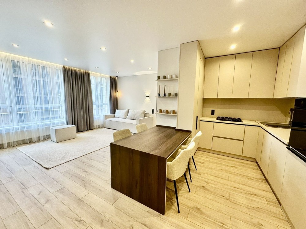 Квартира в сучасному комплексі ЖК Авалон вул.Героїв Майдану з сучасним дизайнерським ремонтом,всі нові меблі(розкл.дивани два,ліжко у спальні з підйомн.механізмом).Шафи та велика гардеробна зі спальні.Опалення індивідуальне.Кондиціонер.Підігрів підлоги,продумане планування є кухня-вітальня та окремо або дитяча або кабінет,а також спальня окрема.Вся побутова техніка(холодильник,посудомийка,газова варильна поверхня,духовка електрична,плазмовий телевізор,пралка.Є ванна з душем.Все нове ще ніхто не проживав.Ліфт працює їде на 2 пов.Хол з колясочною.Поруч буде озеро,стильні дворики,дитячі майданчики є де гуляти,а також паркувати авто.Без СП
