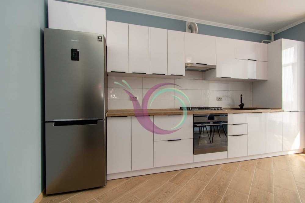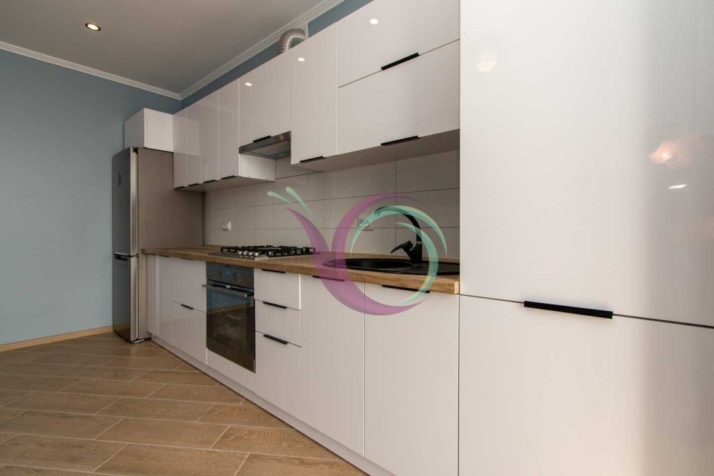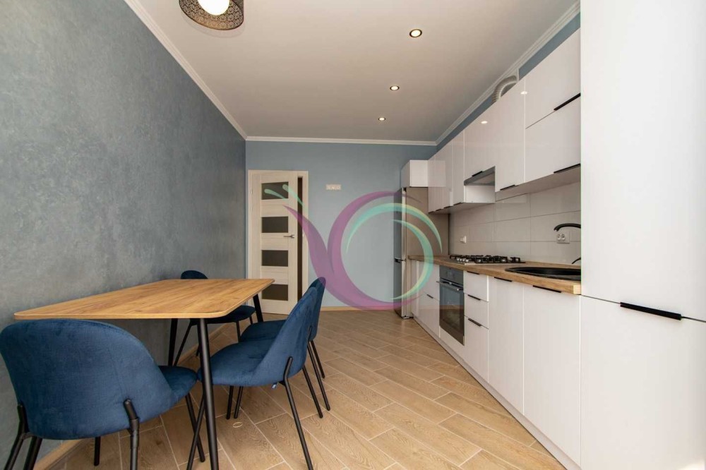 Спальна кімната з широким ліжком та новим ортопедичним матрацом, в іншій кімнаті є диван. Кухня з панорамними вікнами, є шафи для посуду, кухонна техніка та стіл зі стільцями. Санвузол з ванною та пральною машиною. Індивідуальне опалення заощадить кошти в холодний період.
