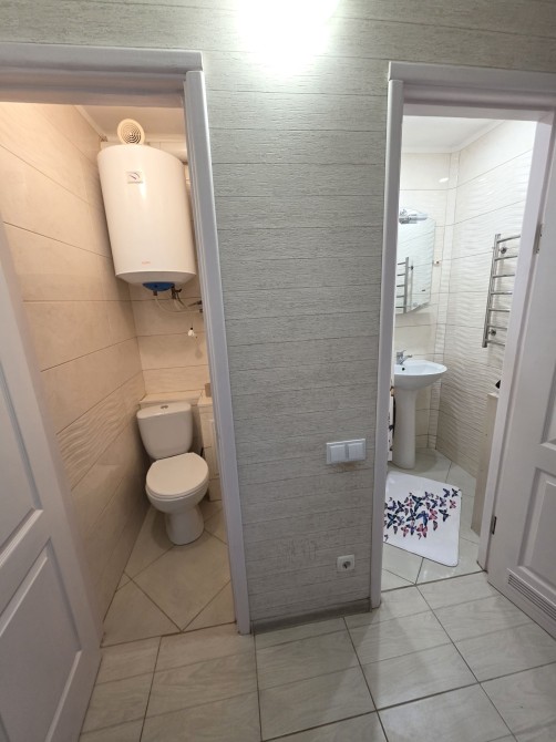 В квартирі дві окремі кімнати. Окремий санвузел. Є гардеробна кімната. Балкон не засклений. Є багато побутової техніки. Бойлер і кондиціонер теж є.