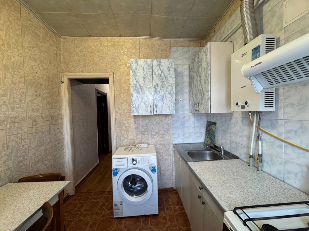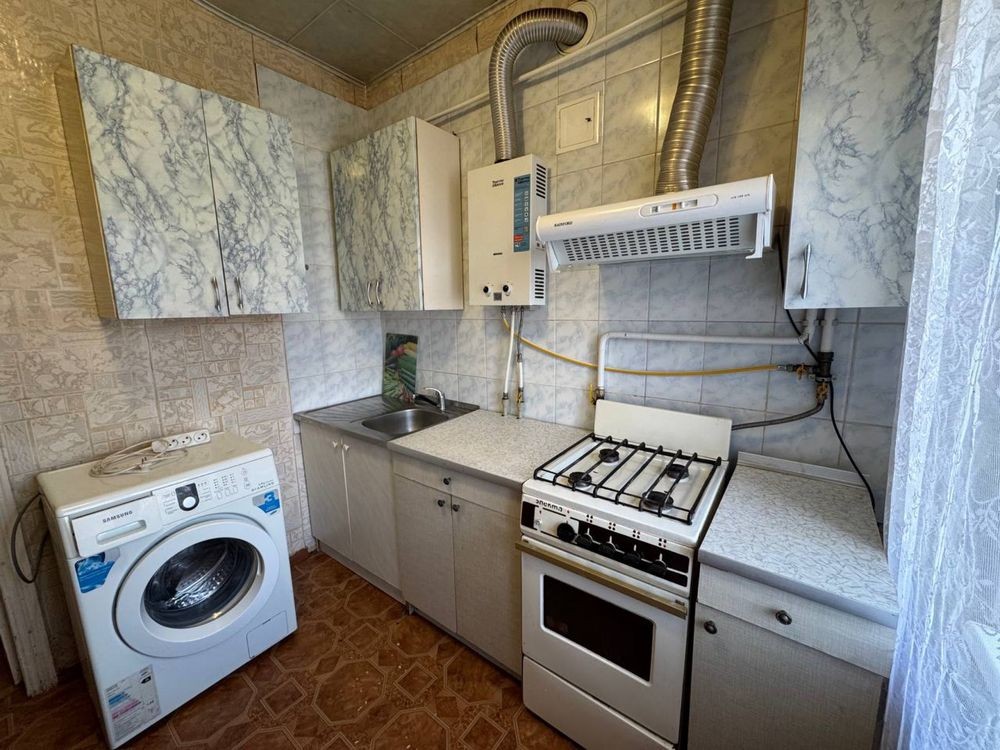 Укомплектована меблями та технікою: пральна машинка, газова колонка, плита2, шафа, тумба, диван, кондиціонер, стіл, холодильник.