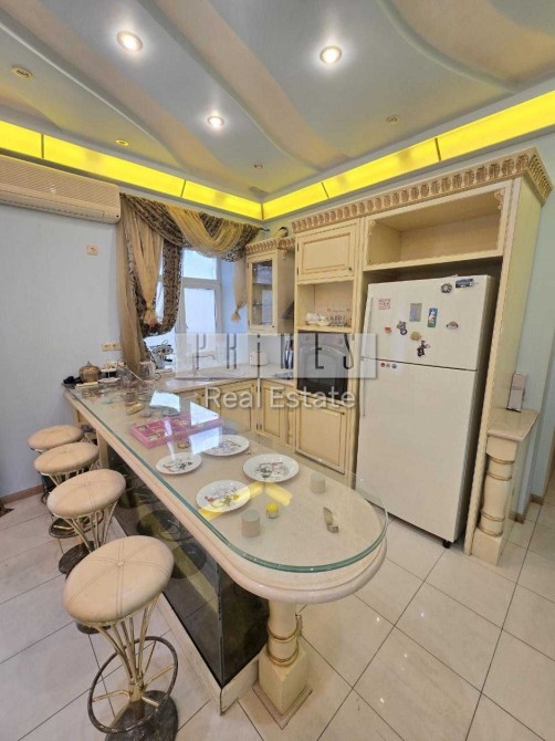 Пропонуємо в оренду розкішну дворівневу квартиру площею 153 м², розташовану на 4 поверсі цегляного “сталінського” будинку. у квартирі велика вітальня з дизайнерськими італійськими меблями та діючим каміном. Кухня, об’єднана зі столовою зоною (стіл на 12 персон) + окрема робоча кухня. Дві гардеробні (на кожному поверсі). Простора спальня з власним великим санвузлом на другому рівні, гостьовий санвузол з біде — на першому рівні.